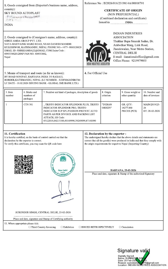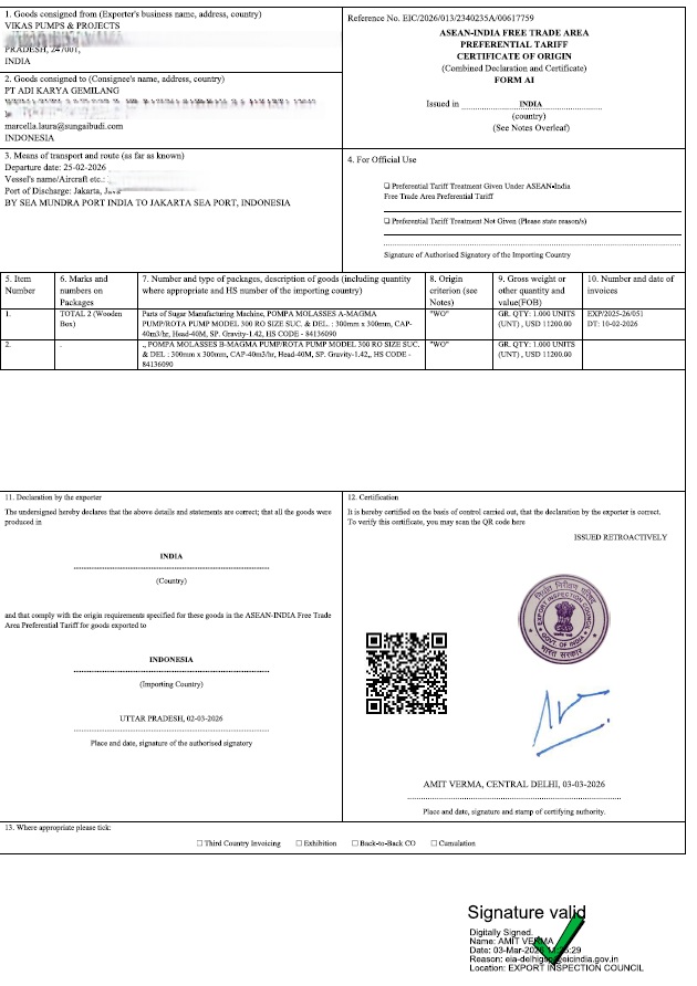 Our Recent Work Free Sale Certificate Chamber COC ISO 9001:2015 Certificate Phyto Certificate Fumigation Certificate AIFTA Certificate, INDONESIA
